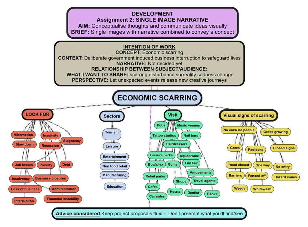 Economic scarring though not a new phenomenon, is a new term. This recession has led to “scarring”, long term damage to individuals’ economic situations and the economy. Covid 19 is the cause of this recession, but this work is not about Covid 19. My images are a response to my current preoccupation with our futures, people’s livelihoods, particularly for the next generation.