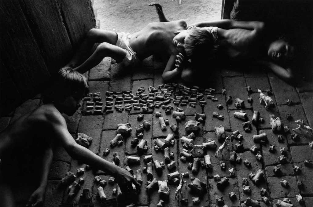 According to Mraz, Salgado represents despair when photographing children playing with animal bones, emphasising poverty by the absence of real toys, prostration on the floor and solemn faces. Lopez similarly photographs children playing with a rat but says that he is showing creativity with his low angled shot.