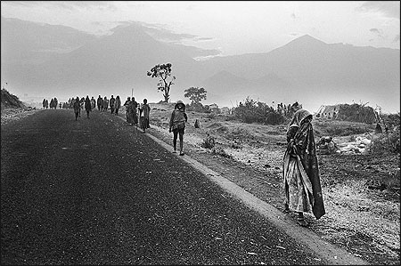 He was actively involved with Sem-terra movement in Brazil, revolting dispossessed peasants, book: Struggle of the Landless. The 1997 book Terra uses expressive captions to contextualise; this is a book in two parts, one of the people the land and their hardships and one of migration and rural land takeovers. Photographing migration and urban landscapes was new for him. Though he has been criticised for aestheticizing misery it also shows strong formal design and photographic modernism, emphasising geometry, and visual contrast. This work is a contrast to the traditional picturesque work for the masses that he gave in Other Americas and is “an effort to get Brazilians what they need” (Mraz, 2002:28)
