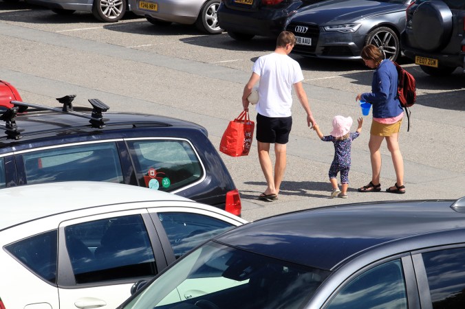 I was influenced initially by Simon Roberts work, where he surveys scenes, often from elevated positions particularly his work We English (2009) documenting everyday signs of Englishness (1985/86) and by Anna Fox’s work Basingstoke (1985/86) particularly her emphasis on the mundane; however, by the time I started shooting I had researched the street photography of Peter Dench, Matt Stuart and Paul Reas and this fed into my first few shoots; thus, I strayed from my original intention focusing more on people in the car park subconsciously looking at characterising their tourist role.
