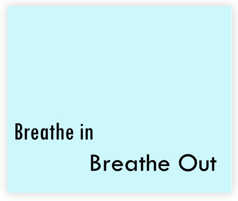 I then shared these with peers: Hangout 26.11.20. One asked me about how the visuals connect with the concept of breathing in and out, and questioned should there be one busy, then one quiet image to mimic breathing in and breathing out. My feeling and the group consensus was that this would destroy the flow and narrative. Following their comments, I did exchange the positions of the 4th and 5th images. I also considered creating a “flip” book with the breathe in at the front flipping the book upside down to the breathe out at the back; this seemed overcomplicated so in the end decided to move the title text completely to the front of the book, instead of having breathe in at the front and Breathe out at the back as I had originally.